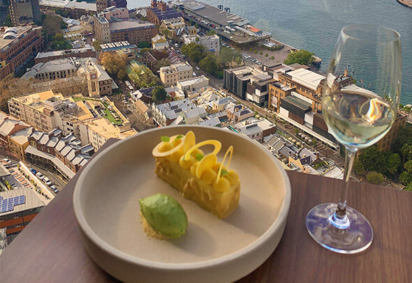 36 floors above the street you’ll find Altitude Restaurant, one of Sydney’s most elegant fine dining restaurants. The panoramic views of the harbour will take your breath away and so will their yuzu and cream from their winter menu - cream cheese with, vanilla jaconde, yuzu curd finished with a basil sorbet.